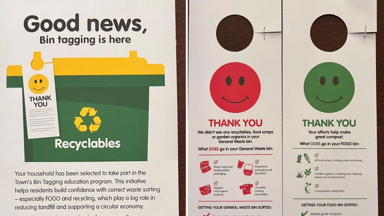 The program, designed to “help residents build confidence with correct waste sorting” through a “non-intrusive check of the top of your kerbside bins on collection day”, has copped backlash for rating locals on their rubbish using smiley or sad faces.