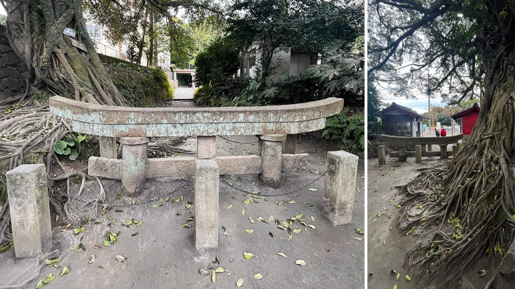 Close to where the island now joins the mainland, the Kurokami Buried Torii Gate serves as a stark reminder of Sakurajima’s ferocity. Originally standing at the entrance to a local shrine, only the very top of it remains visible, the rest buried in compact volcanic ash.