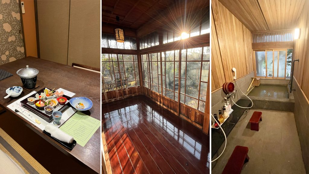 If the city offers history and flavour, the surrounding countryside provides restoration. My first night was spent at Sozankyo, a tranquil ryokan 90 minutes northwest of Kumamoto famous for its dining, its onsens, and its charming rear wing constructed using wood from a single giant tree via traditional methods in which the entire windowed enclosure is built without the use of a single nail.