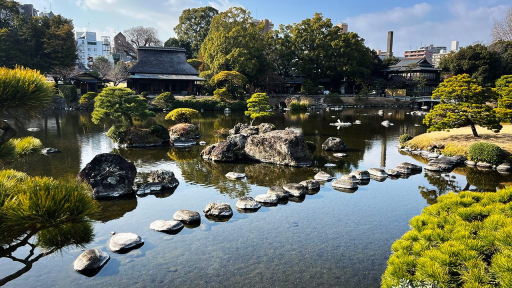 From there, it was straight to Suizenji Jojuen Garden, one of the city’s most quietly impressive spaces, made all the more remarkable by its pure serenity sandwiched right between busy roads, city blocks and parking structures. Designed as a miniature landscape garden, it traces the historic Tokaido road in symbolic form – it even has a tiny Mount Fuji represented by a gentle rise at its centre. Impressive carp abound.