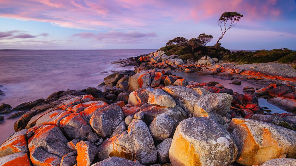 Stretching along Tasmania’s north east coast from Binalong Bay to Eddystone Point, the Bay of Fires is known for its white sand, gentle waves and striking orange lichen covered boulders that regularly stop visitors in their tracks.