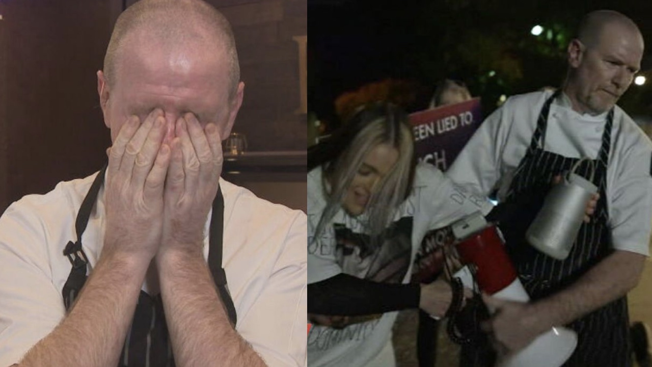 The chef clashed with vegan protestor Tash Peterson on Saturday, after she stormed his booked-out restaurant with other activists in tow.