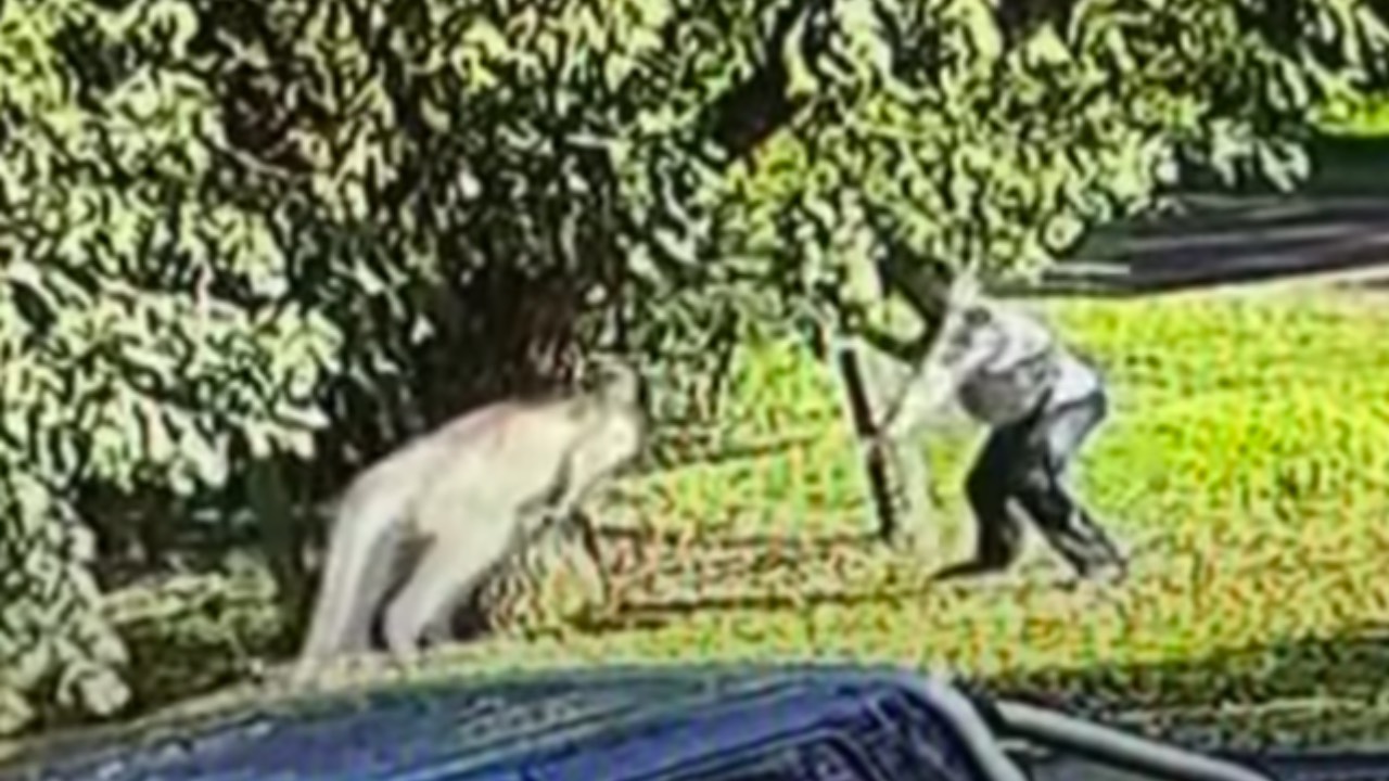 The terrifying tousle lasted minutes until Dess wrestled the roo to the ground, using his weight to subdue it.