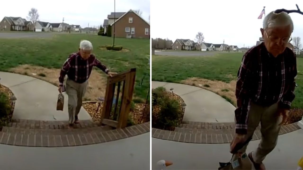A community has rallied around an elderly delivery driver after a doorbell camera captured him struggling to make a food delivery, prompting an outpouring of support online.
