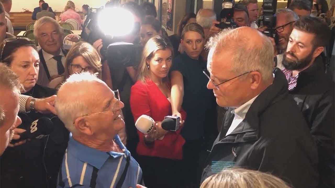 The man berated Mr Morrison and accused him of breaking election promises, including one promising financial support for older Australians.