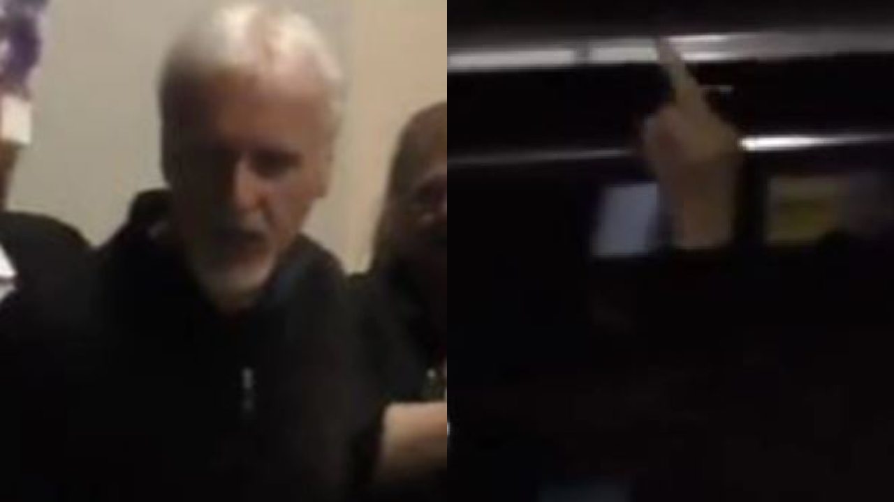 James Cameron caught giving fans the bird after being booed