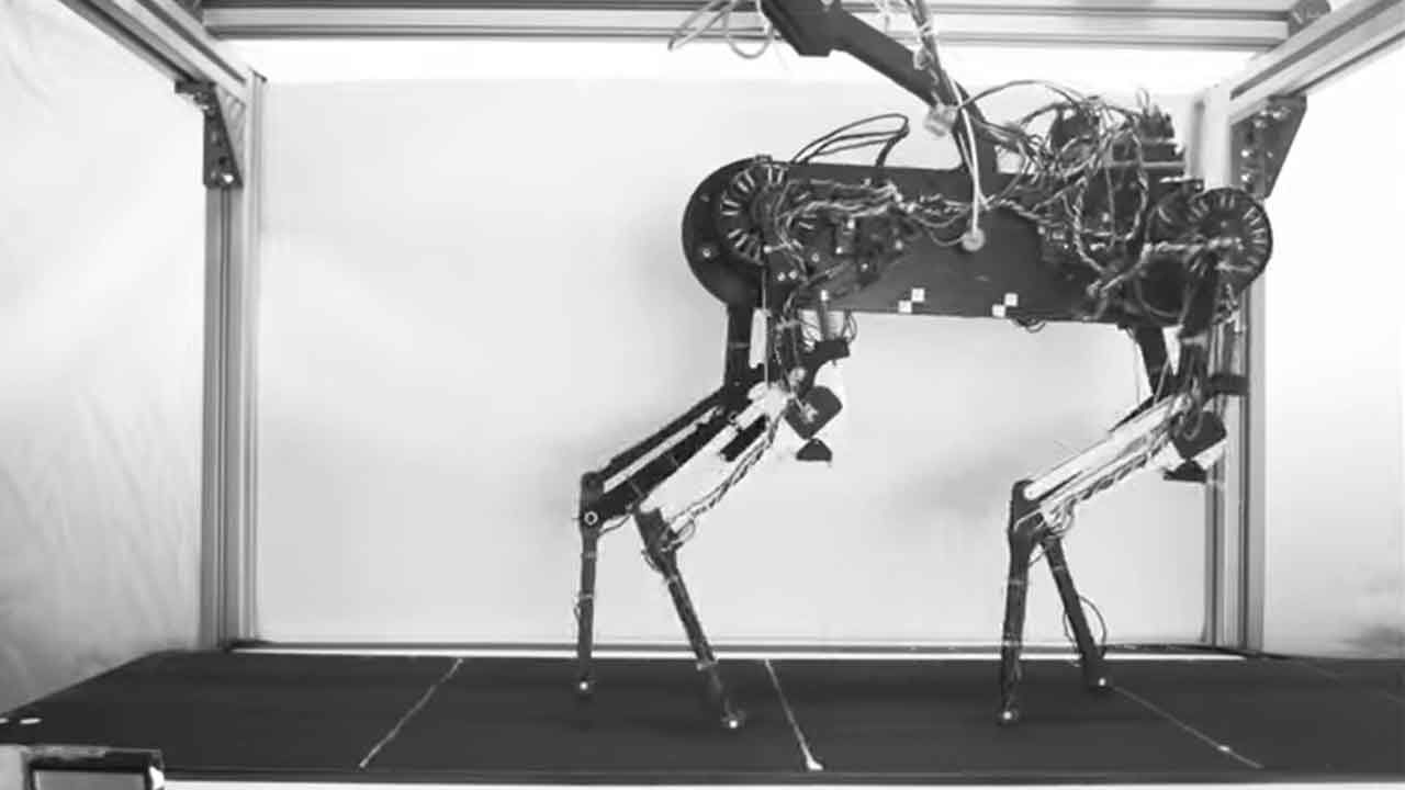 A robot dog with a virtual spinal cord can learn to walk in just one hour