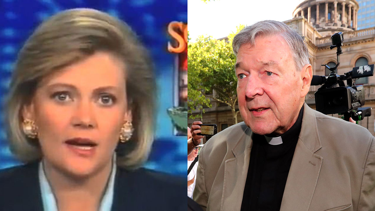 Why is 1980s newsreader Katrina Lee standing by George Pell's side?