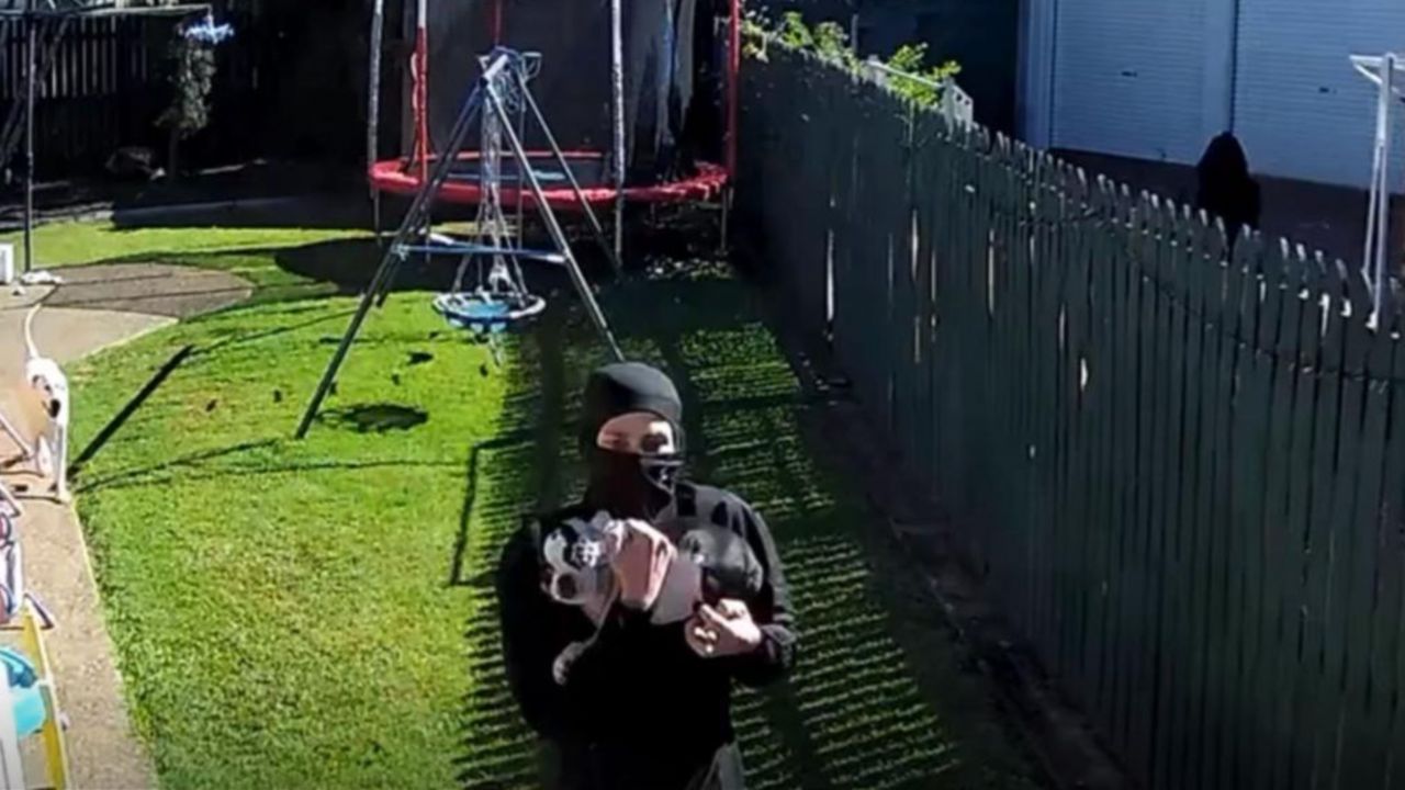 Manhunt after masked figures steal puppy from backyard