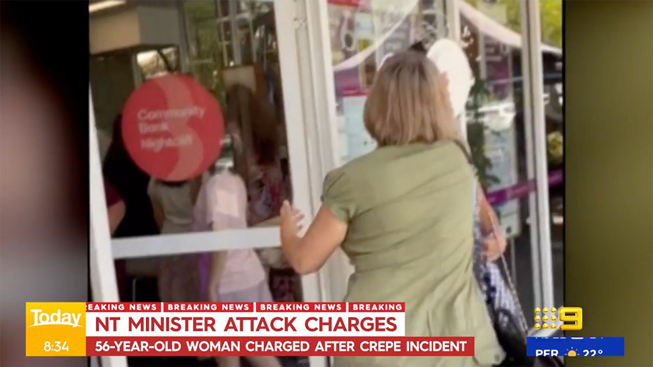 Woman charged after NT Chief Minister hit in the face with crepe
