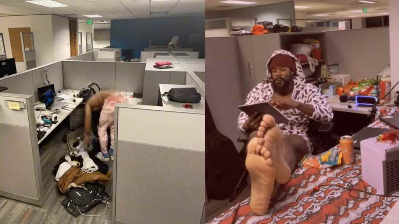Man moves into office cubicle in protest