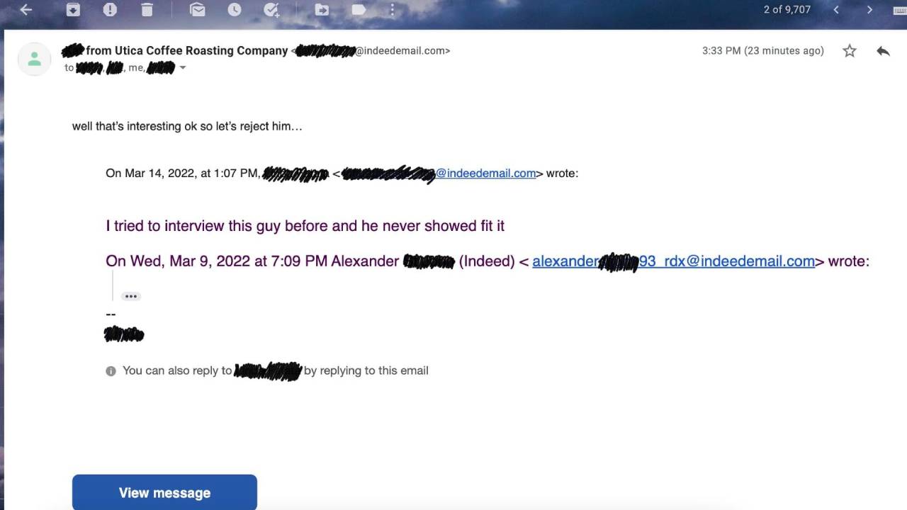 Man rejected from interview through accidental email to management