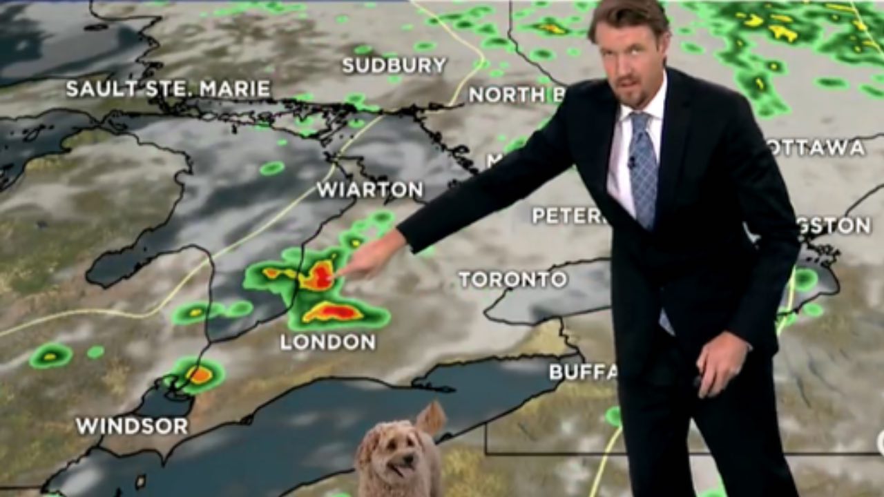 Weatherman's ruff day on the job