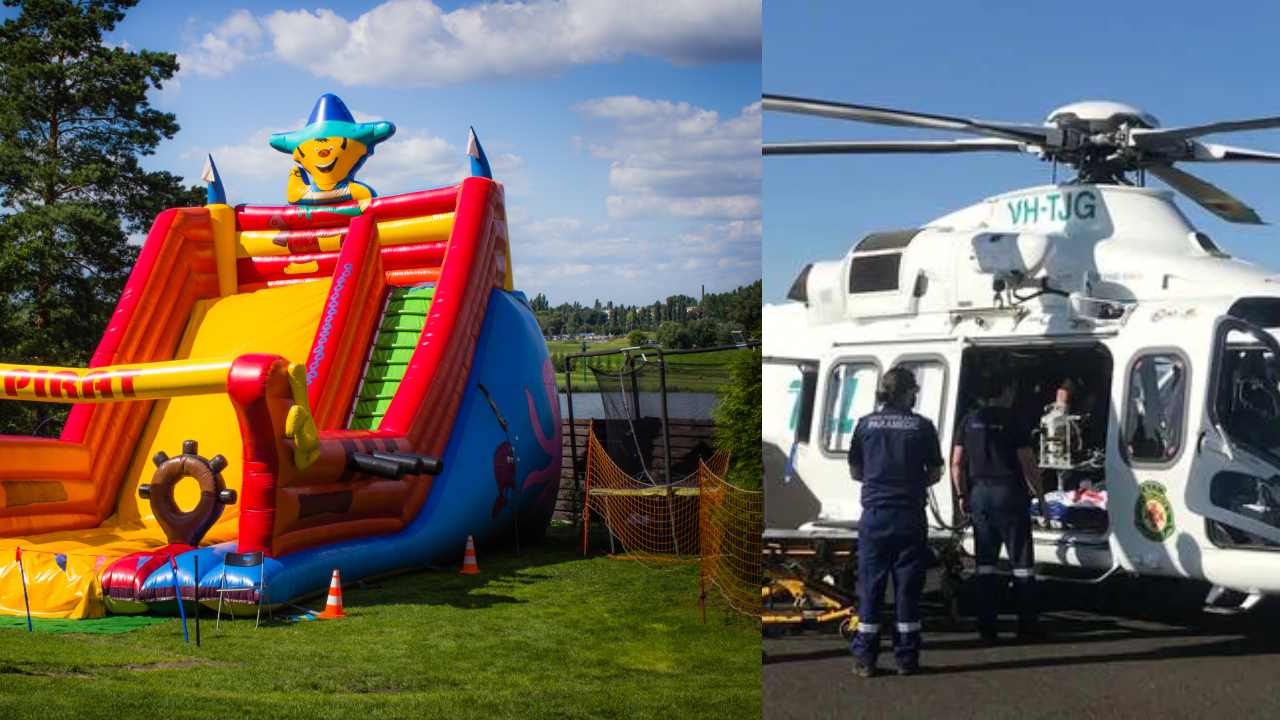 Bouncy castle sent flying hundreds of metres turns family day upside down