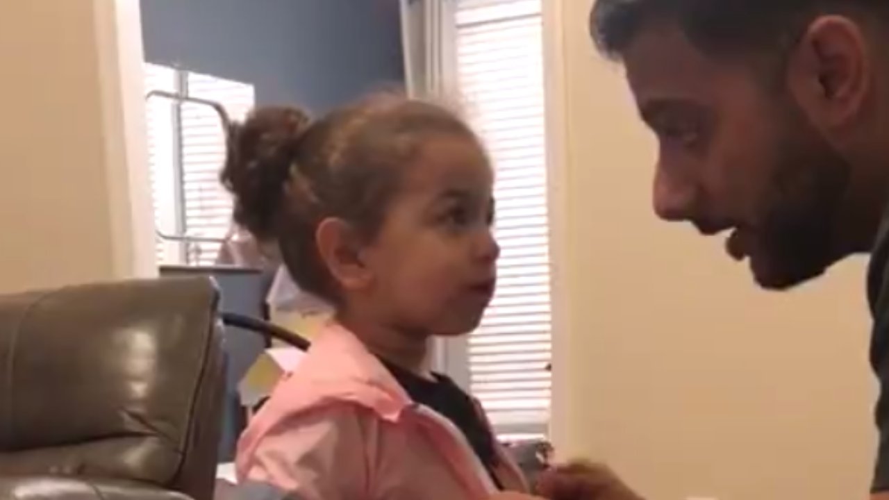 Father adorably interrogates his daughter after returning home with a classmate’s jacket