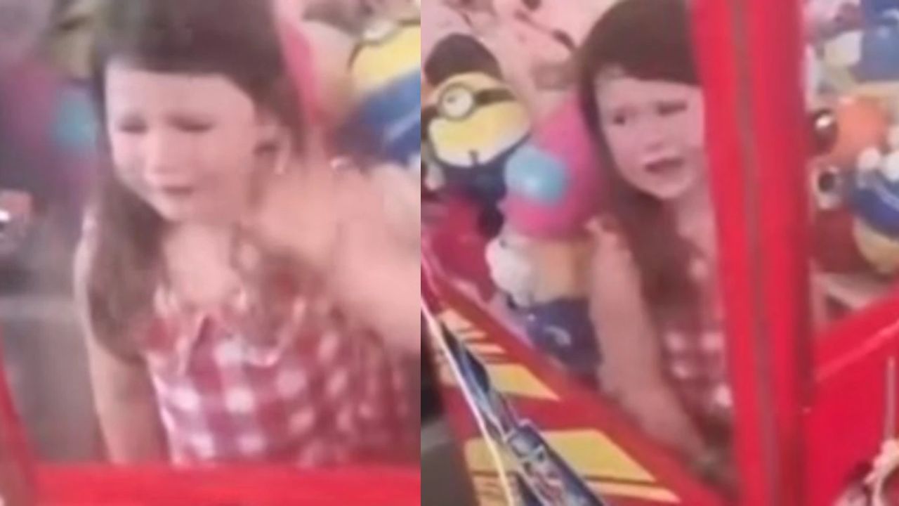 Four-year-old gets stuck INSIDE arcade claw machine