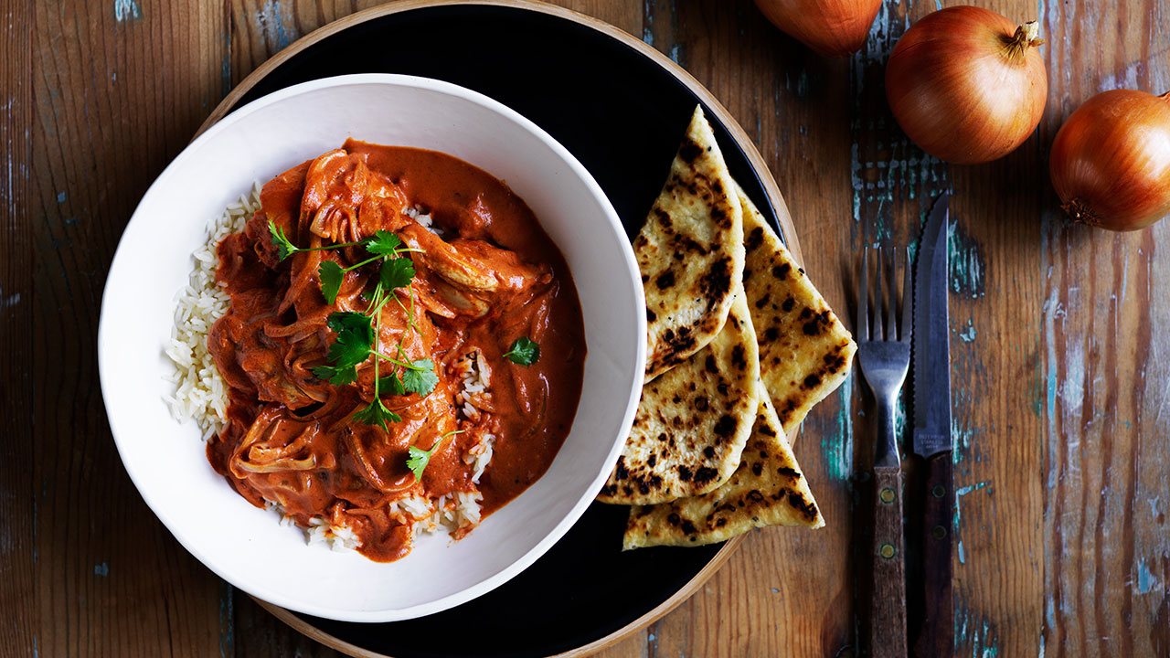 Easy butter chicken with rice and naan