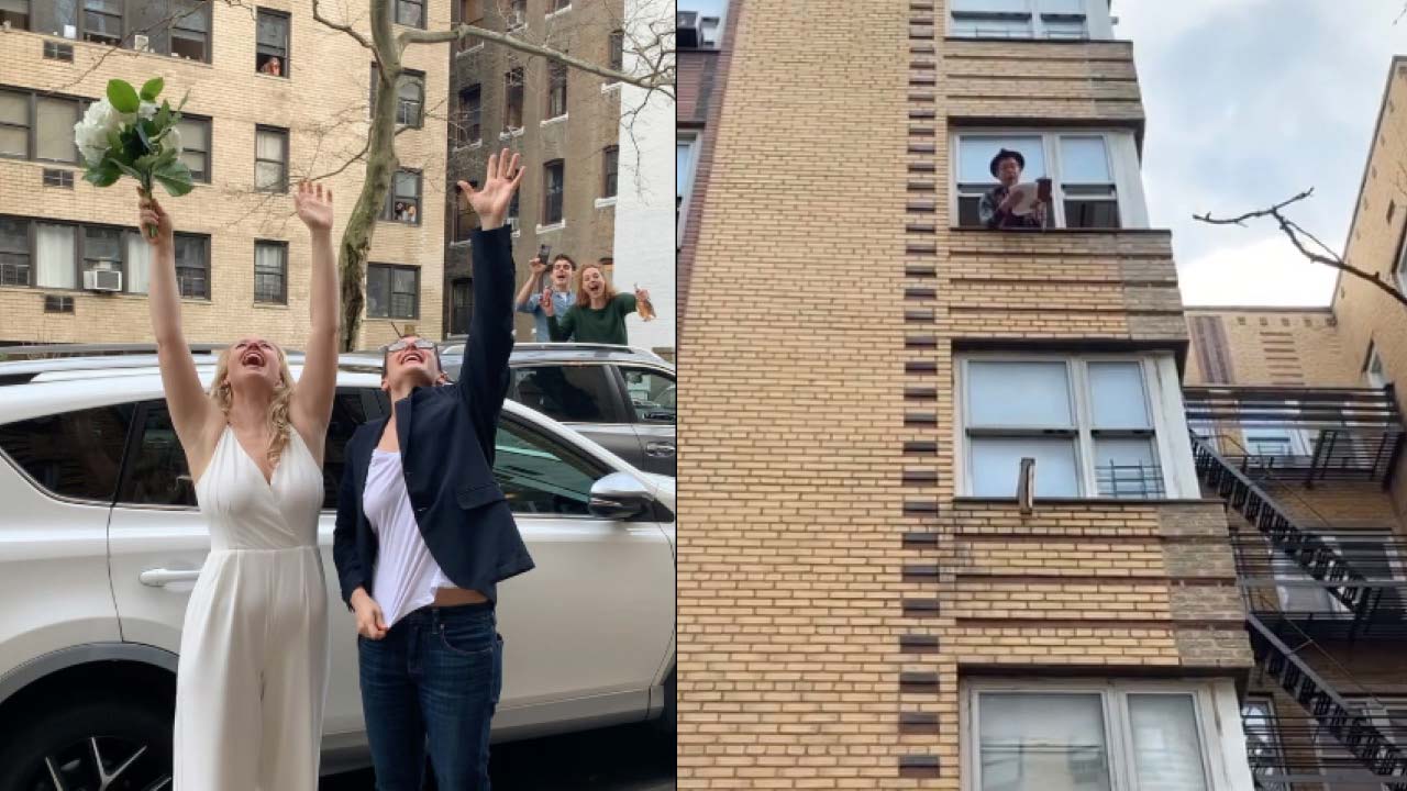 New York wedding officiated from fourth-floor window amid social distancing