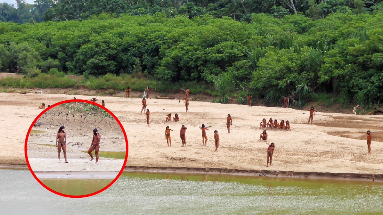 Rare footage captures secluded tribe emerging from the Amazon