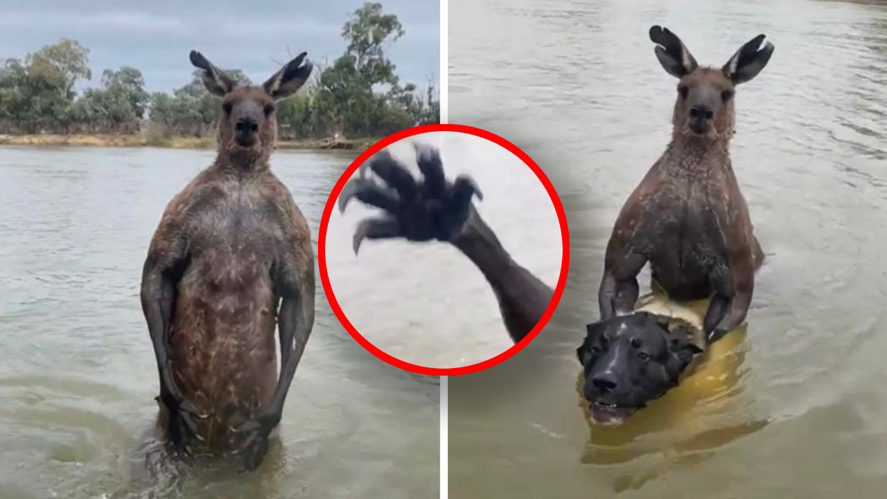 "Roo-jitsu": Former cop fends off 2m-tall kangaroo trying to drown his dog