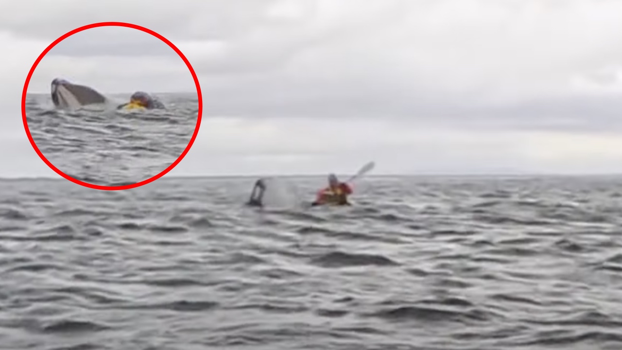 Insane moment a whale briefly swallows kayaker